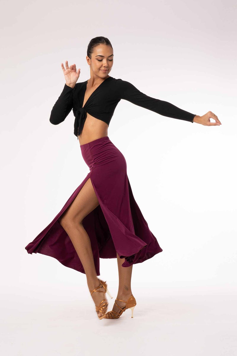 Intermezzon pitkä tanssihame esimerkiksi tangoon ja lattaritansseihin. Hameessa pitkä halkio joka paljastaa säären kauniisti ja luo hameeseen lisäliikettä. Mukavan joustava kuminauhavyötärö takaa napakan istuvuuden.